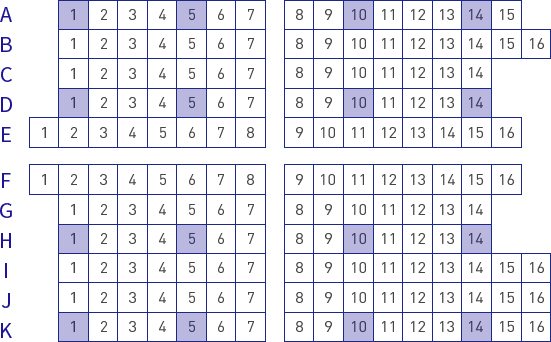 보령문화예술회관 소공연장 좌석 배치도 입니다.